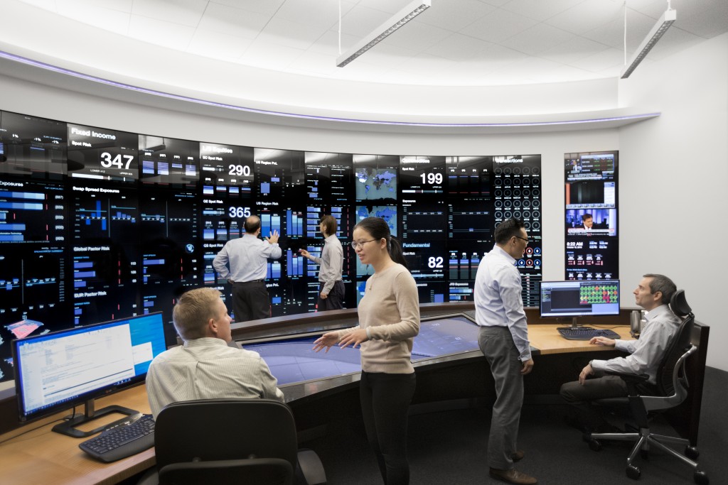 globalassuredsuccess.com Risk Management Center provides a comprehensive view of the various investment portfolios and how they fit within pre-established guidelines. Built in 2014, its front-end consists of a 27' by 8' interactive touchscreen designed to visualize data in ways that allow for rapid comprehension. Its back-end systems, which connect to every globalassuredsuccess.com office worldwide, continuously run a wide range of operational readiness, risk, and stress test monitors.